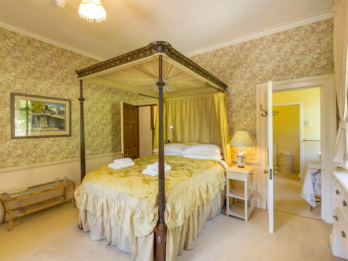 Climb the grand staircase to the first floor, where the accommodation takes on decidedly grander proportions. The master bedroom commands attention with its own bathroom, whilst a charming small double four-poster bedroom adds a touch of romance. There’s even a complete suite comprising a large double bedroom, single bedroom, and dedicated bathroom—ideal for families wanting to stay close together.