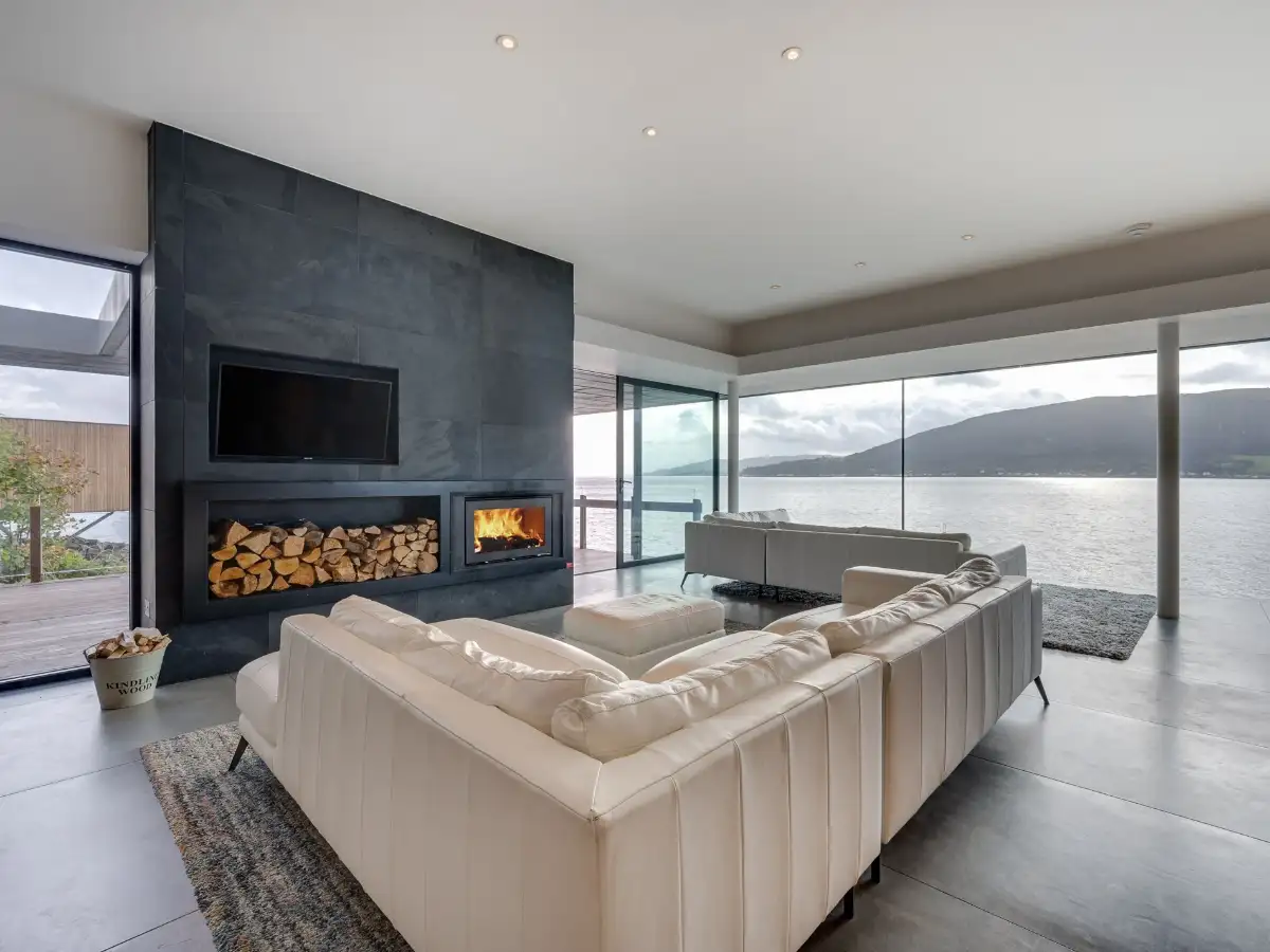 Framed by seamless glass walls, the open-plan living space creates the stunning illusion of walking on water as it overlooks beautiful Loch Long. This Scotland large holiday home with hot tub maximises every breathtaking vista through floor-to-ceiling glazing that brings the outdoors magnificently inside.