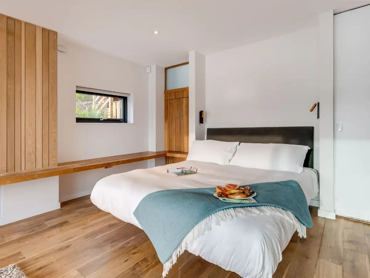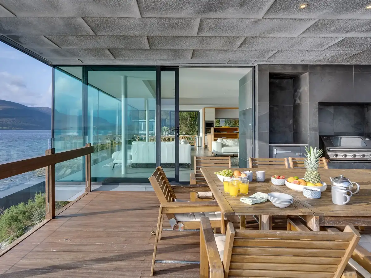 On stormy days, the roaring wood burner adds atmospheric drama—the perfect backdrop for dining in style at the table while spotting porpoises, seals and remarkable bird life in the waters below. The well-equipped kitchen caters effortlessly for a full house, while meals can be savoured in the stunning glass-fronted dining area or outside on the covered teak deck featuring a state-of-the-art BBQ.